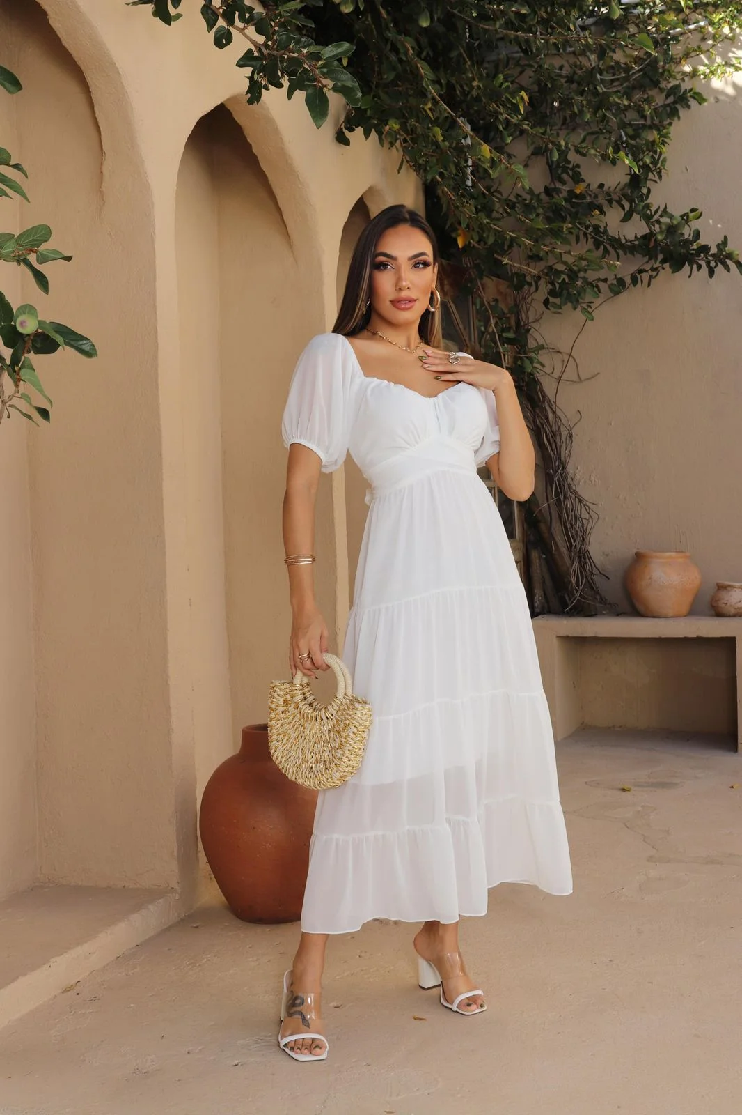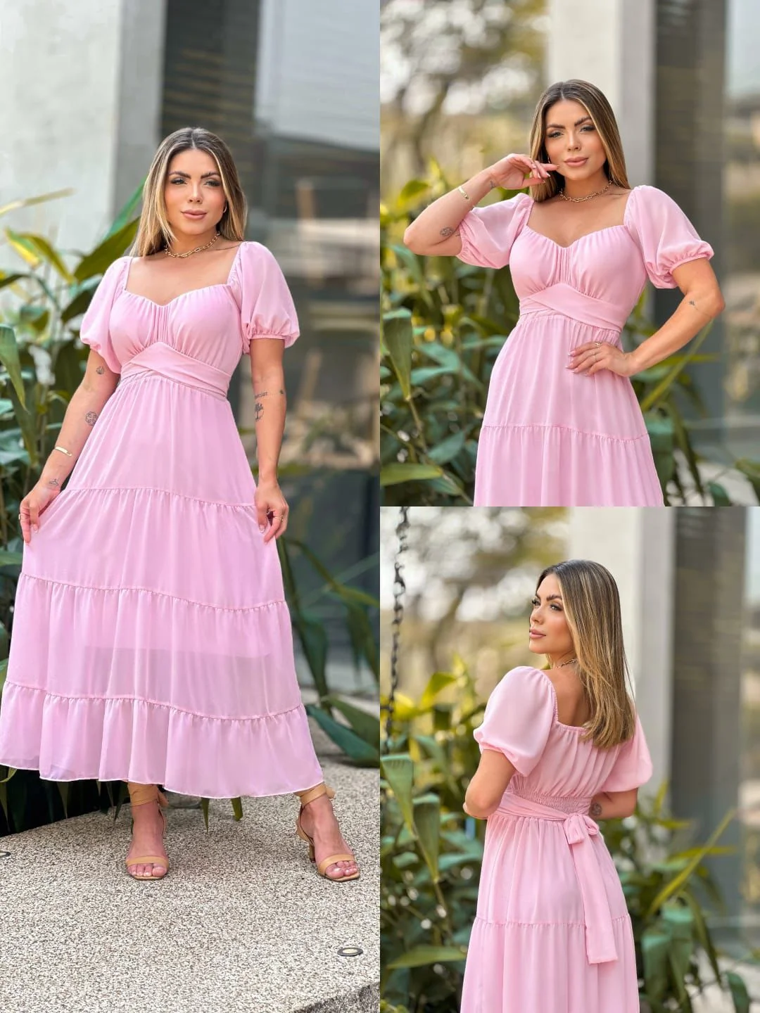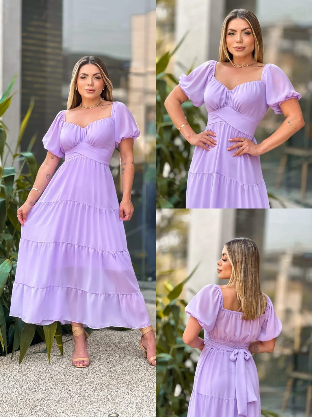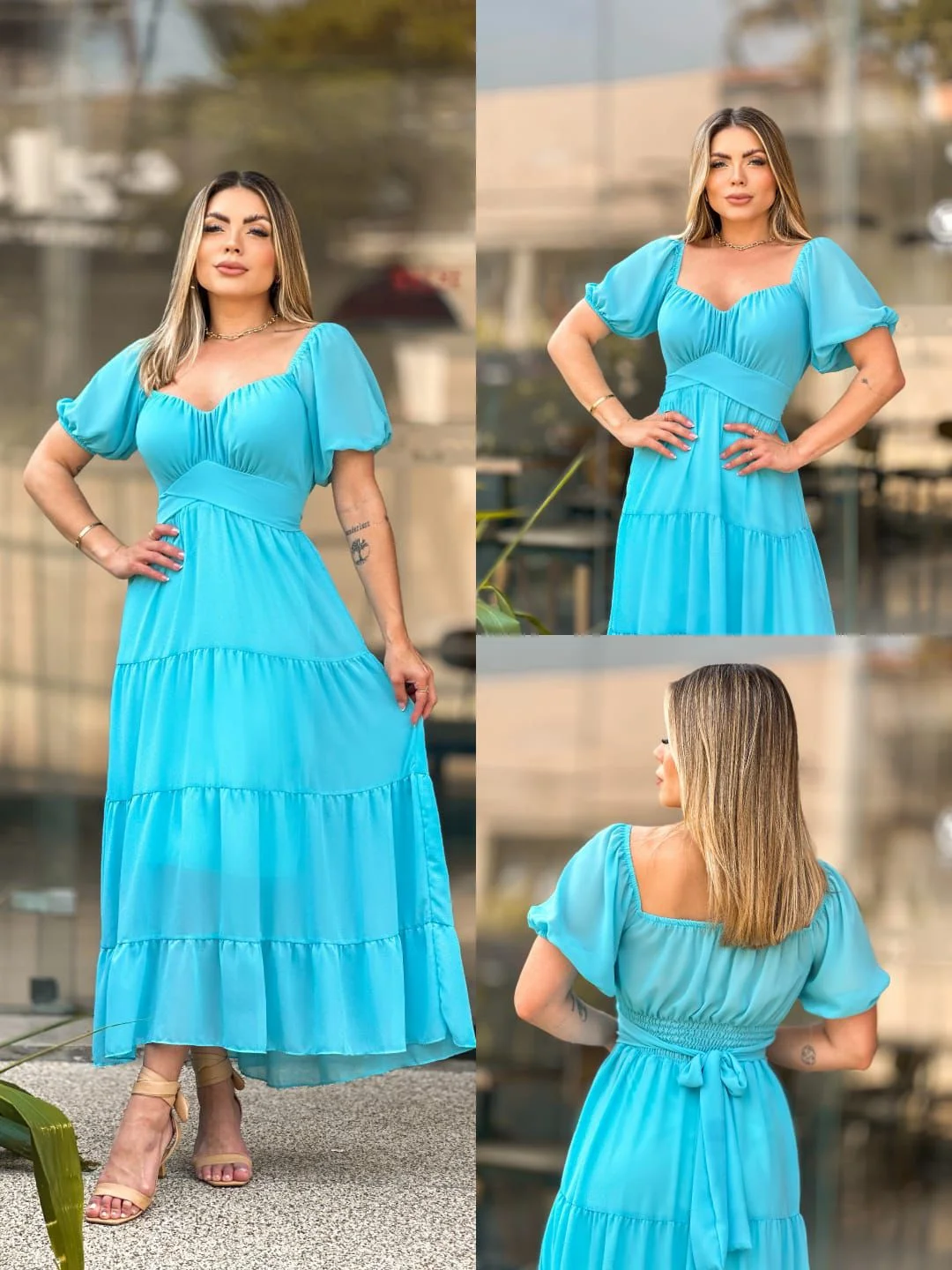 Descrição da peça: Vestido Midi com mangas bufantes.